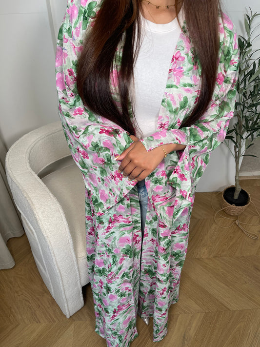 Astou Floral Abaya with chiffon scarf| BABY BLUE